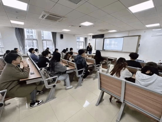 袁烨康还结合自身的求职经历和职业发展经验,从职业规划、简历制作、面试技巧等方面进行了讲解,强调无论是考研复试、考公考编还是求职简历,实习与科研经历都是关键竞争力,建议同学们要提早进行规划,积累相关行业的高质量实习,并且要多参与创新创业实践,扩充自己的简历内容,提升就业竞争力。宣讲现场气氛热烈,互动频繁。