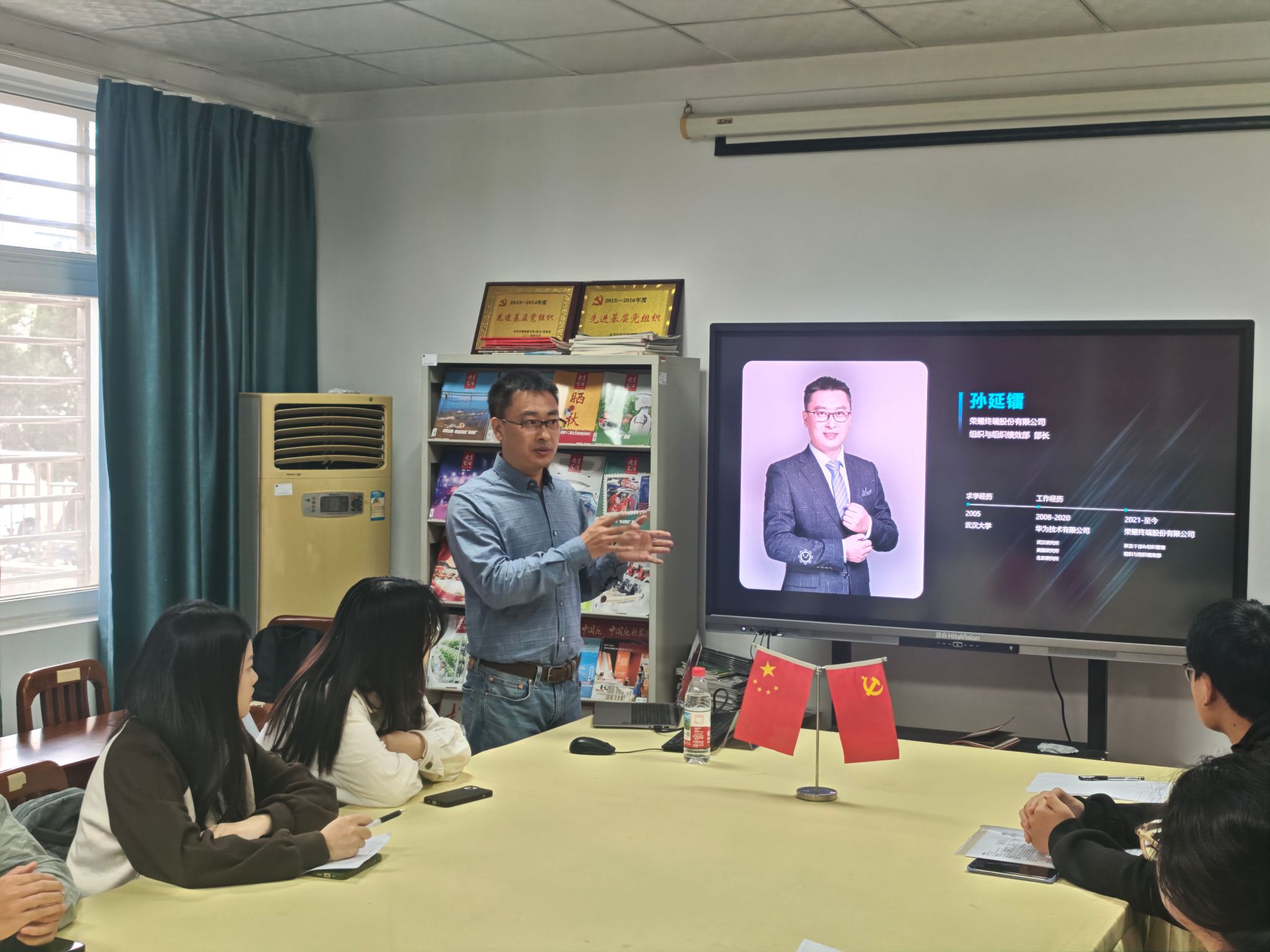 邀请荣耀终端来院举办承办红·外线大思政课堂“职来职往”专场招聘会,荣耀资深人力资源专家孙延镭担任主讲嘉宾,30余名毕业生参与本次招聘会。